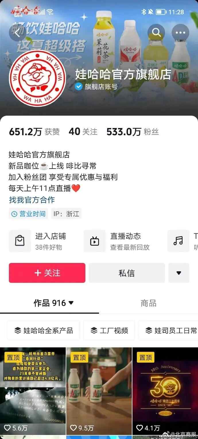记者注意到,原本每日11时开播的娃哈哈官方旗舰店,今日未按时开播。该抖音店铺客服回应称,直播为不定期的,可以关注店铺等待。