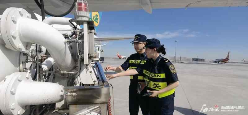 6月24日,乌鲁木齐地窝堡机场海关关员监管保税航油加注。刘奕鸽 摄