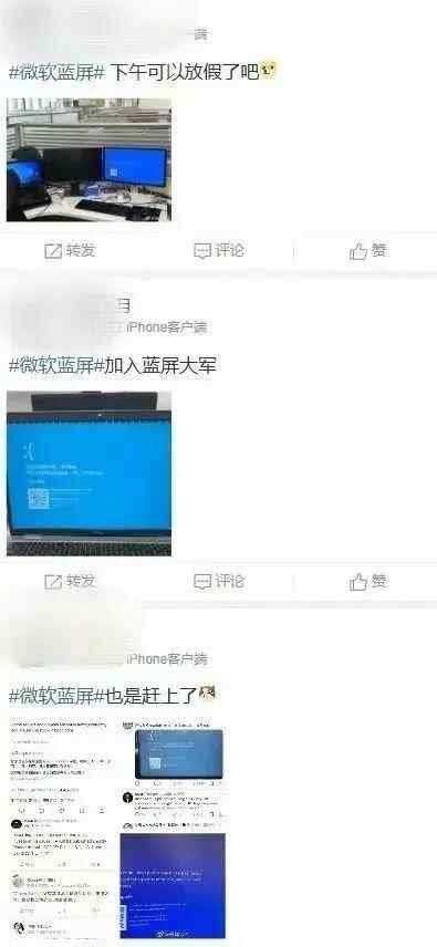 不少网友也纷纷晒图称,在工作时遇到电脑蓝屏的情况。