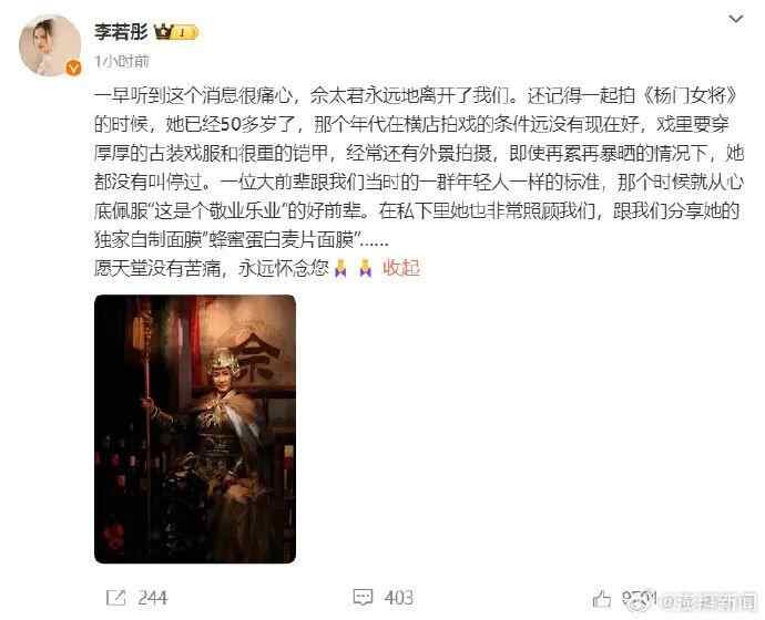 此前报道:演员郑佩佩去世,曾出演《唐伯虎点秋香》《卧虎藏龙》