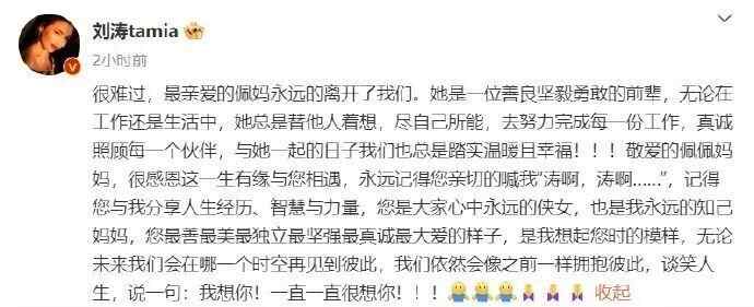 郑佩佩的子女们表示:“她喜欢当演员,她知道,即使通过努力工作,她也很幸运,拥有这样的职业生涯。我们的母亲保持谦虚和可亲,耐心和善良,总是慷慨地付出时间,渴望尽她所能帮助别人。我们将深深地怀念她。”
