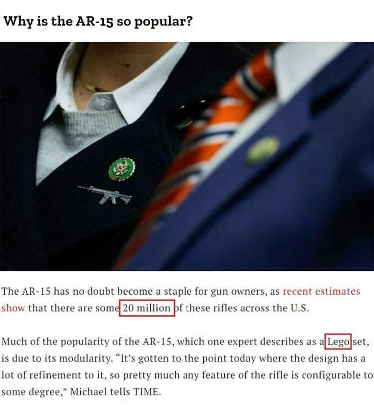 正因如此,AR-15在美国的民间保有量已激增到2000多万支,几乎每16个人就拥有一支。