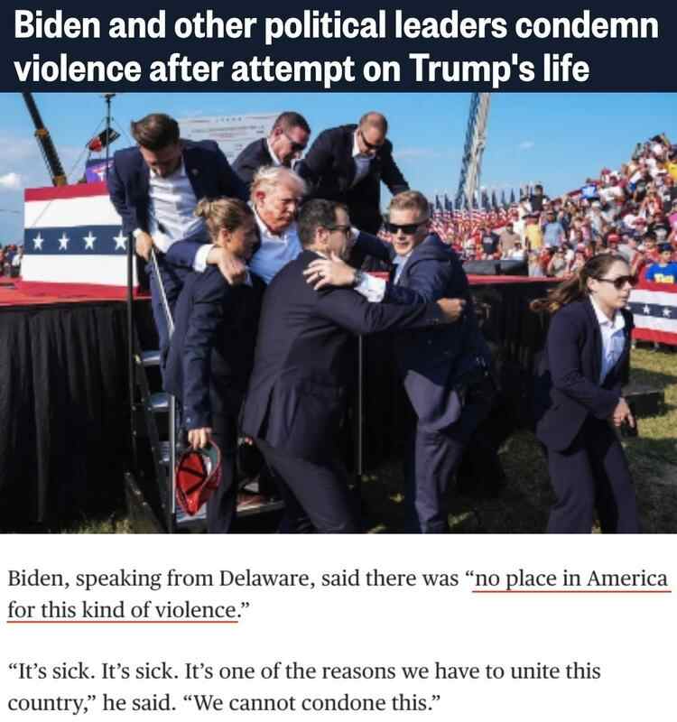 △美国全国广播公司网站:美国总统拜登和其他政治领导人谴责针对特朗普的袭击