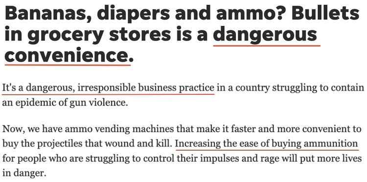 然而反对者认为,从便利店买子弹是一种“危险的便利”,会间接导致发生更多枪击事件。在一个枪支暴力横行的国家,这是一种不负责任的商业行为。