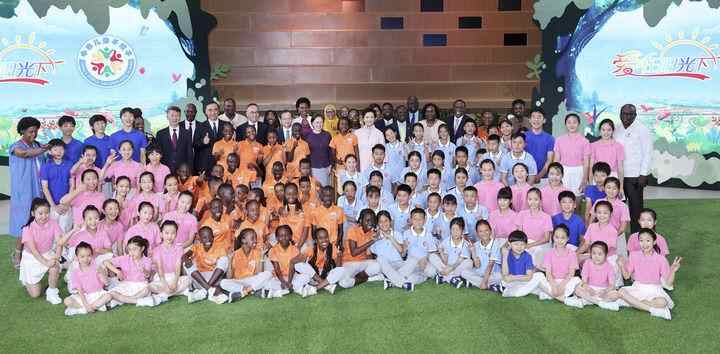 7月19日下午,国家主席习近平夫人、世界卫生组织结核病和艾滋病防治亲善大使、联合国教科文组织促进女童和妇女教育特使彭丽媛在北京城市图书馆出席“爱在阳光下”——中非儿童手拉手夏令营活动并致辞。