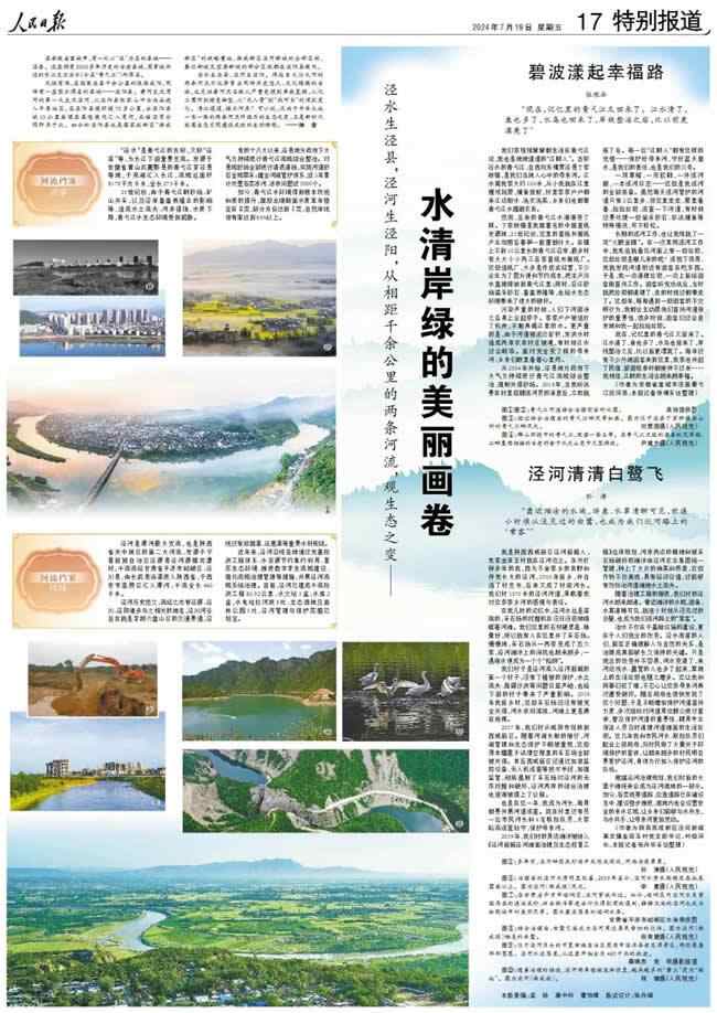 泾水生泾县,泾河生泾阳。绵延自大江大河的两条河流不仅孕育出同样历史悠久、文化璀璨的古城,也见证着河流沿线从严重受损到岸线复绿、从化工围河到绿色转型、从“无人管”到“找河长”的深刻变化。清江迢迢,绿水何来?可以说,流淌于中华大地一东一西的两条河流所经历的生态之变,正是新时代我国生态文明建设成效的生动缩影。