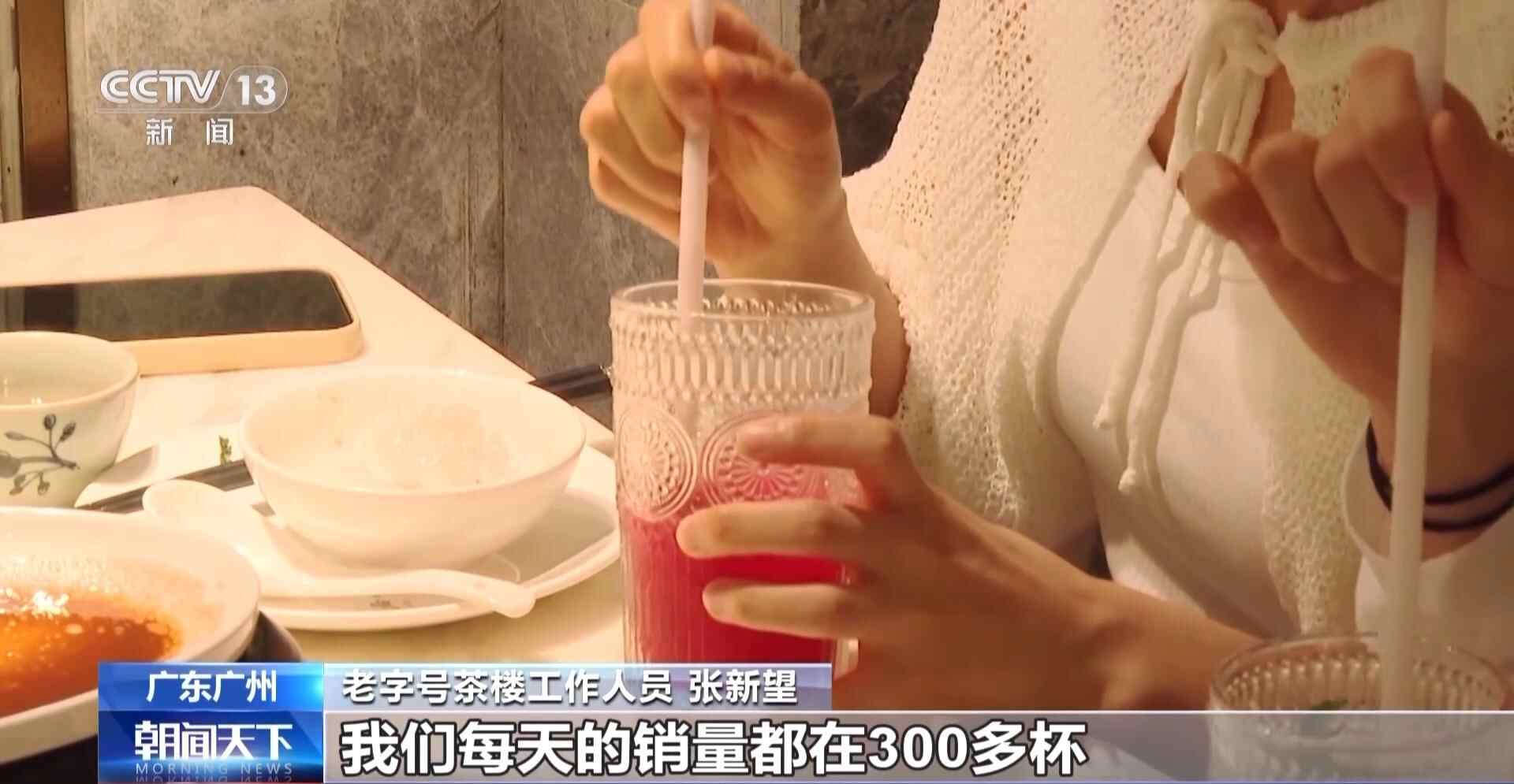 工作人员告诉记者,进入暑期,他们的客流量大幅增长。酸甜爽口的芭乐水果茶、营养解暑的茅根竹蔗粥,老字号茶楼里的菜单“上新”了多款当季佳肴,给消费者带来清凉舒爽的夏季美食体验。