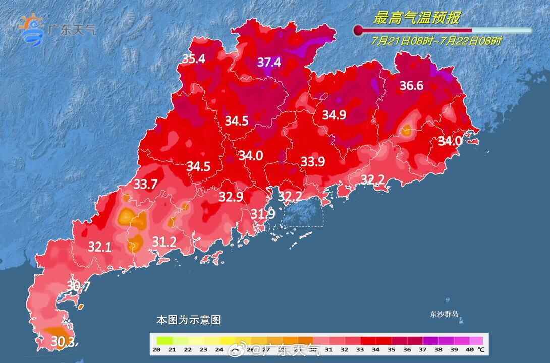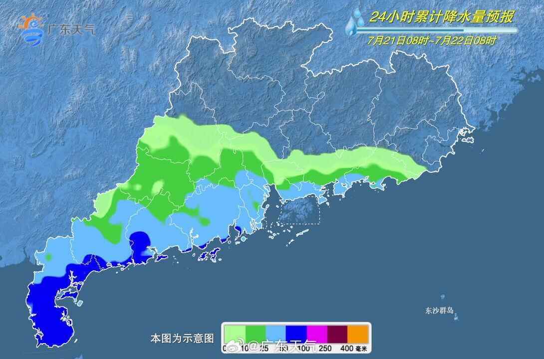 21-22日,粤西市县多云到阴天,有大雨到暴雨局部大暴雨,珠江口两侧市县阴天有中到大雨局部暴雨,其余市县多云,有(雷)阵雨;雷雨时局地伴有8级左右短时大风。最高气温:粤北市县34~36℃,其余市县30~34℃。