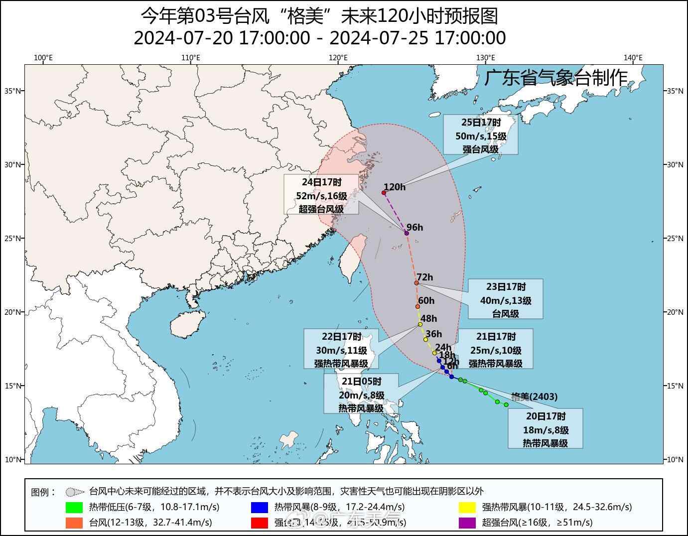 未来,“格美”的路径还有很大不确定性,有三种路径可能:①直接登陆华东;②先登陆台湾岛再登陆华东;③不登陆我国,在近海北上。“格美”的具体走向与后期副热带高压的位置、强度和西风带系统有关,大家可继续关注派派君的最新预报。