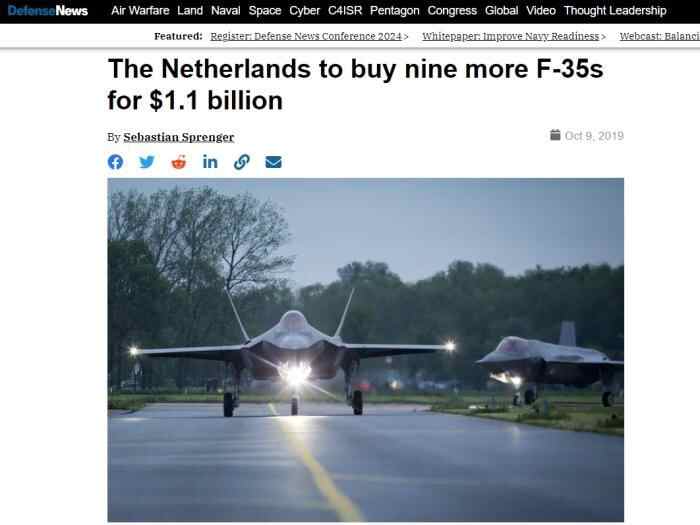 综合外媒报道,包括非北约成员国的瑞士在内,欧洲计划订购F-35约700架。根据荷兰国防部公布的采购单价估算,这些F-35至少价值850亿美元。如果将配套的弹药、零部件、设备吊舱等全算上,总金额或再翻一番。