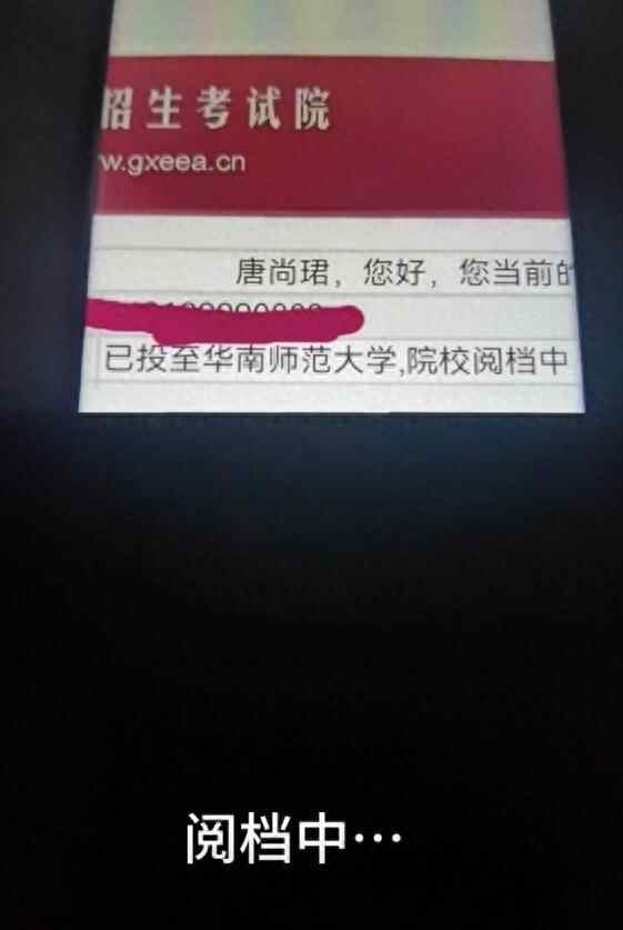 唐尚珺晒出的录取信息查询显示,其档案已投至华南师范大学,院校阅档中。