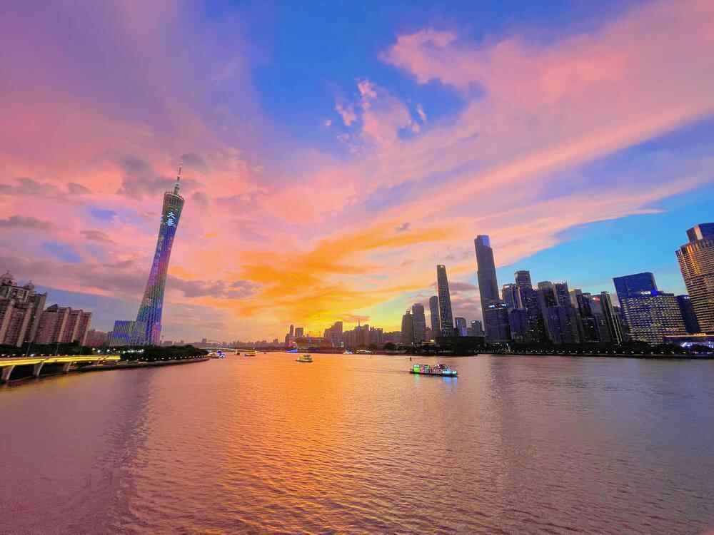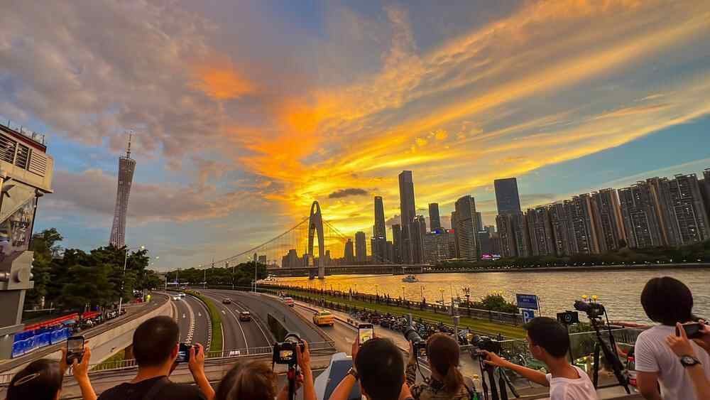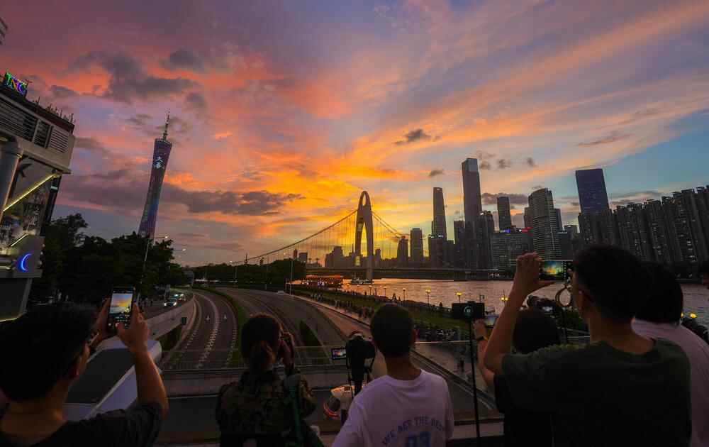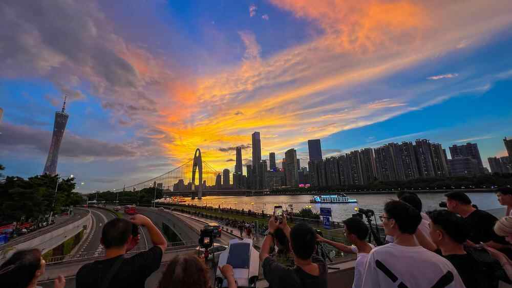 其中,7月22日傍晚的晚霞,因出现位置偏西,正好与广州塔、东西塔、猎德大桥等地标重合,引来更多市民游客拍照留念。