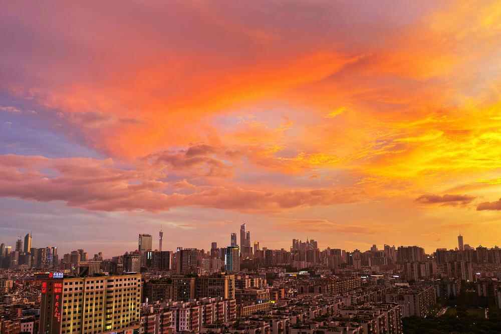 7月22日是二十四节气“大暑”。当天傍晚,火烧云与红彤彤晚霞场景再次在广州出现。绚丽的晚霞如烈火燃烧,将整片天空染成了耀眼的金黄色,如梦如幻,热烈而浪漫!
