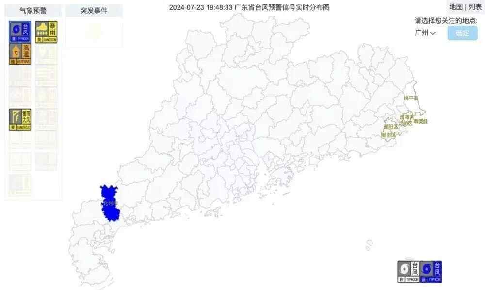 在防御高温之余,广东各地密切关注着“格美”的风雨影响。7月23日傍晚起,粤东沿海地区局地开始发布台风白色预警信号。