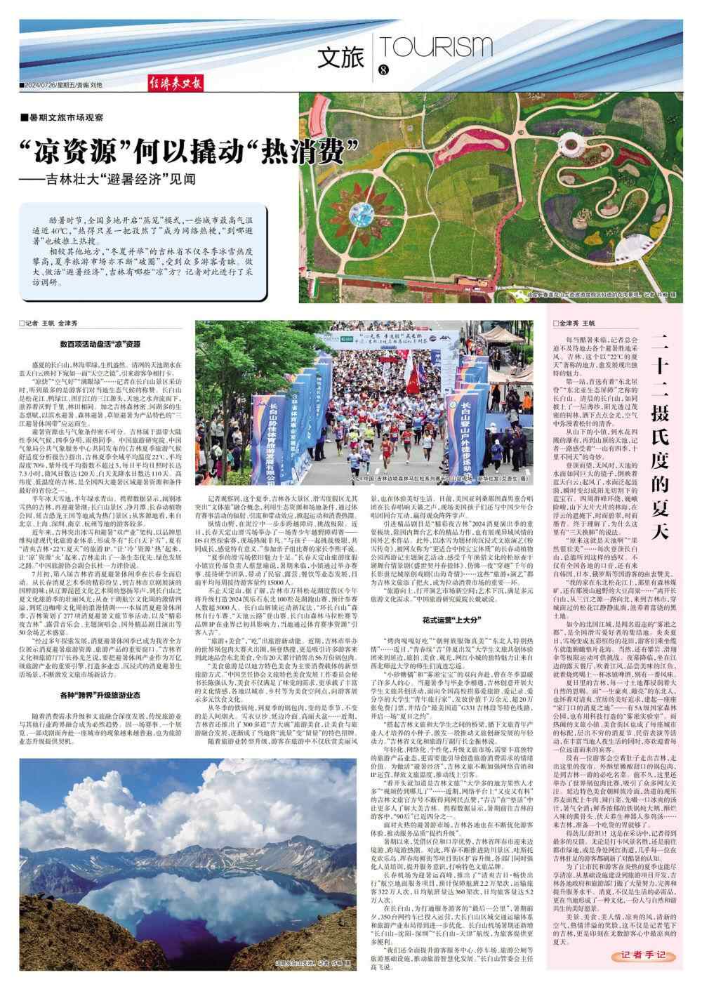 近年来,吉林突出冰雪和避暑“双产业”架构,以品牌思维构建现代化旅游业体系,形成冬有“长白天下雪”,夏有“清爽吉林·22℃夏天”的旅游IP。“让‘冷’资源‘热’起来,让‘凉’资源‘火’起来,吉林走出了一条生态优先、绿色发展之路。”中国旅游协会副会长杜一力评价说。