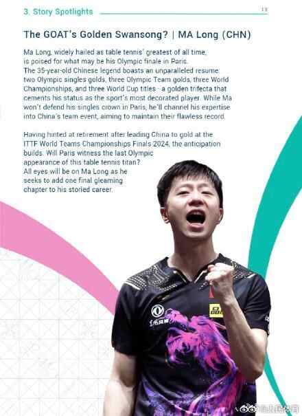 作为中国男乒最年长的老大哥,35岁的马龙职业生涯十分辉煌,获得过三届世乒赛男单冠军、三届世界杯男单冠军、两届奥运会男单和三届奥运会团体冠军、全运会冠军等荣誉。