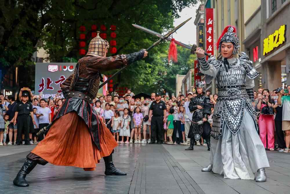 7月27日,一场别开生面的粤剧快闪在广州北京路千年古道上演。“非遗”邂逅北京路千年古道,《谯国夫人》场景生动再现,吸引市民游客纷纷拍照留念。南来北往的旅客在粤韵声声中感受这座城市的活力和魅力。