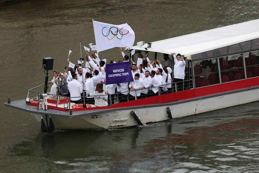 7月26日,难民体育代表团在开幕式上。新华社记者 赵丁喆 摄