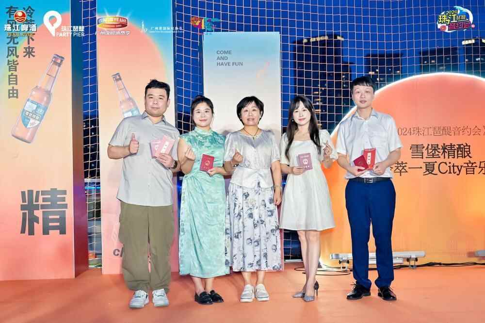 此外,“雪堡精酿冷萃一夏City音乐会”也在琶醍3.14潮派体育文化区开幕。傍晚的珠江边,尽管白天经历了大暴雨的洗礼,傍晚的天空却意外放晴。众多市民和游客聚集于此,活动现场热闹非凡。精酿啤酒、美食、爵士乐、DJ、热舞,还有神秘歌手轮番上阵。一场落日音乐会与婚俗婚服主题秀演的完美融合,夕阳下,江风中,来一杯雪堡精酿,沉浸在音乐和美食的世界里,现场为新人颁发证书,见证一场幸福浪漫的秀演。