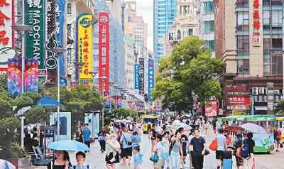 近日,上海迎来夏季旅游旺季。图为7月24日,南京路步行街游客众多。王冈摄(人民图片)