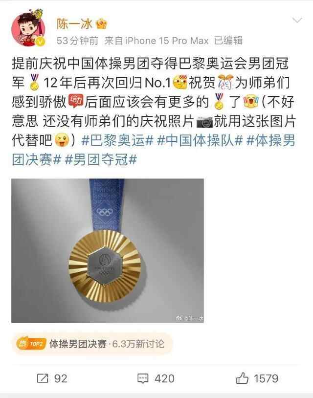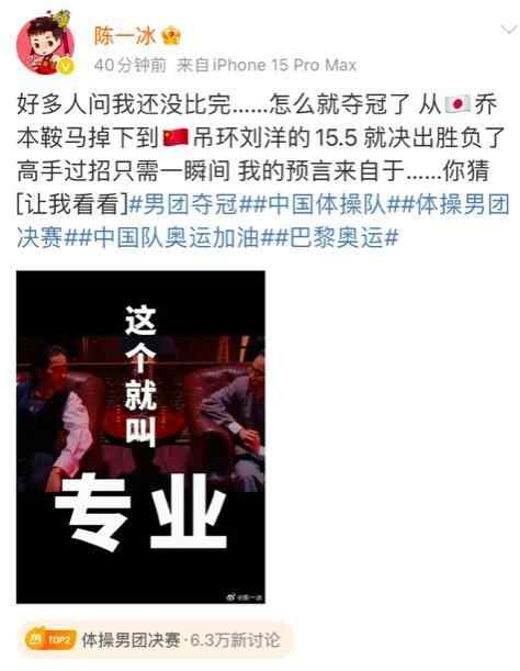 网友截图显示,前体操奥运冠军陈一冰曾连发两条微博提前庆祝夺冠,引发争议。#陈一冰 半场开香槟#也登上热搜。