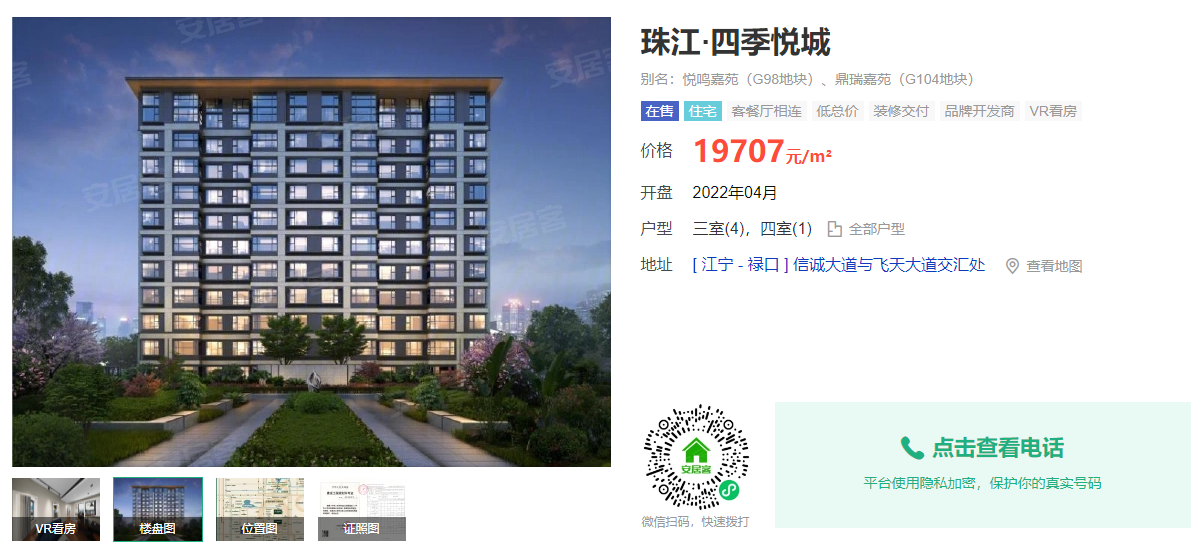 上述珠江四季悦城业主当时购买的G98号地块和G104地块分别于2021年和2022年开盘,交付时间分别为2023年6月和2024年6月,对应的均价约19980元/平方米和19707元/平方米。
