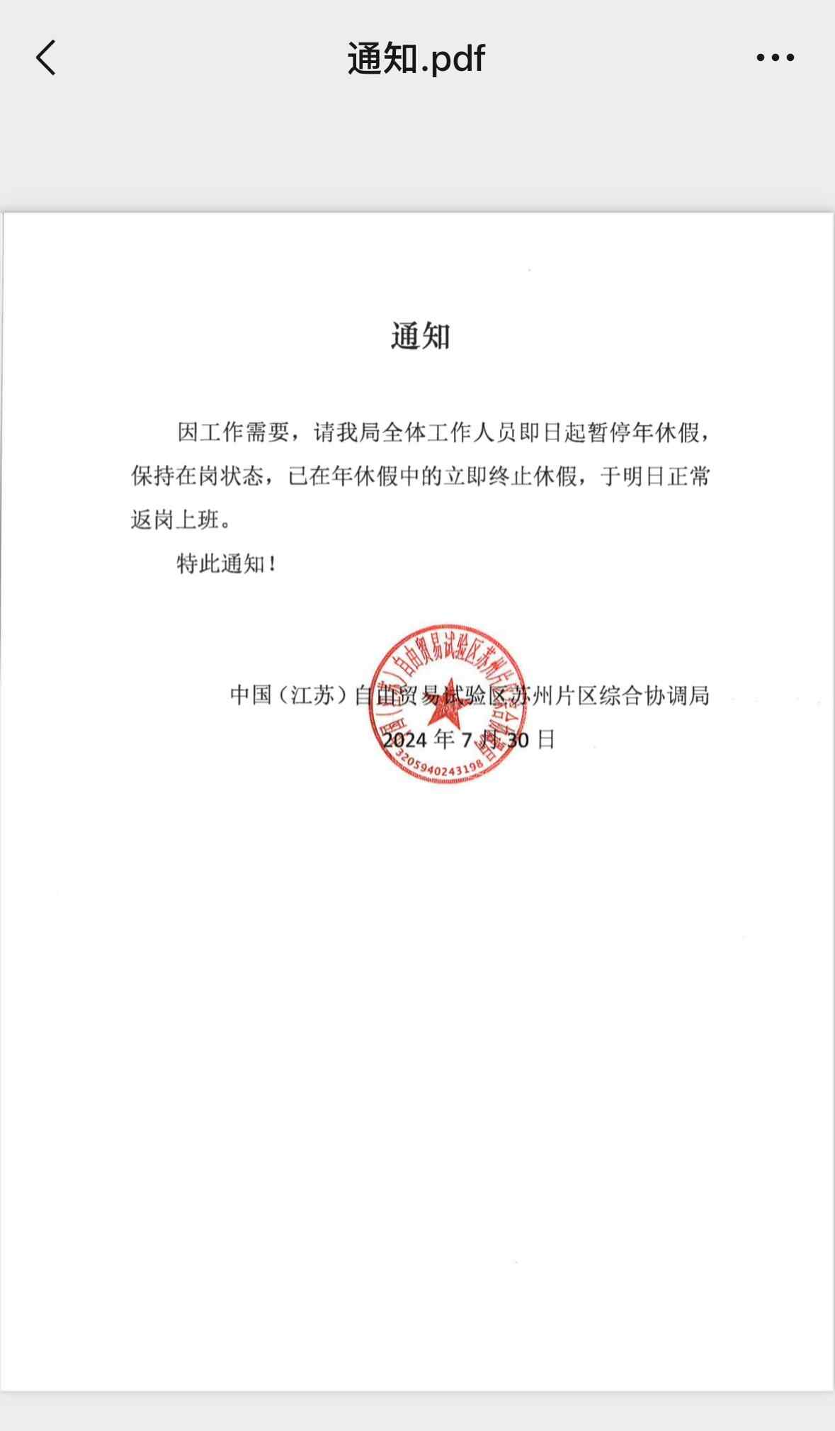 记者随后联系到苏州工业园区商务局副局长孙静霞。她表示,确有此通知,“是我们根据工作需要进行研判作出的决定”,其他信息不便透露。