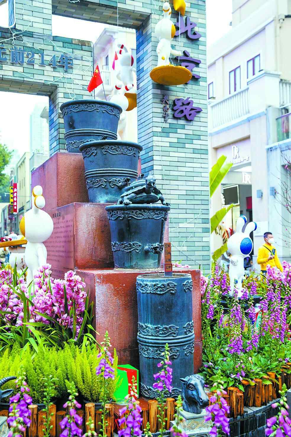 北京路的铜壶滴漏复制品。广州日报新花城记者 苏俊杰 摄