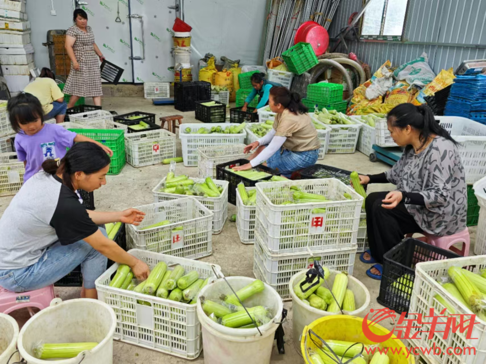 金羊网讯 记者聂粤摄影报道:盛夏时节,位于贵州麻江县宣威镇甲树村蔬菜种植基地内,村民们正在田间来回穿梭采摘丝瓜;打包车间内,忙着将丝瓜打包装货上车的村民也正忙得不亦乐乎……
