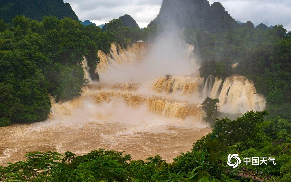 近日,受持续强降雨及上游来水影响,广西德天瀑布一改往日清澈,变成“黄金瀑布”↓↓↓