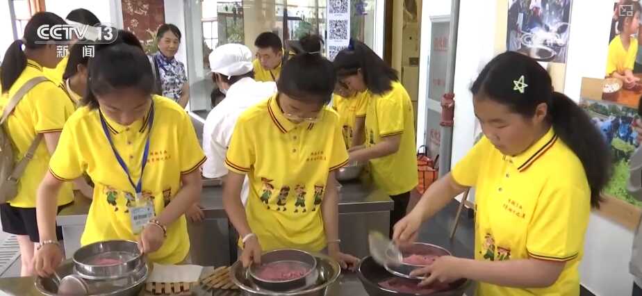如何让学生体验桑树文化,老师为孩子们准备了用桑叶等原料加工成的面粉,让学生走进厨房,通过美食来增加感性认识。在面点师的示范下,一块块印有“定胜”的桑叶糕点出炉。