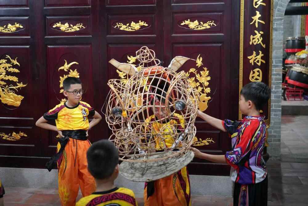 开课仪式上,往届长湴红色醒狮传习班的“狮兄”“狮姐”特别为新学员们带来了开场表演。随着锣鼓擂响,小狮子跳跃出场,扎步摆尾、眨眼蹬腿,灵动活泼的表演引得现场新学员与家长们掌声连连。