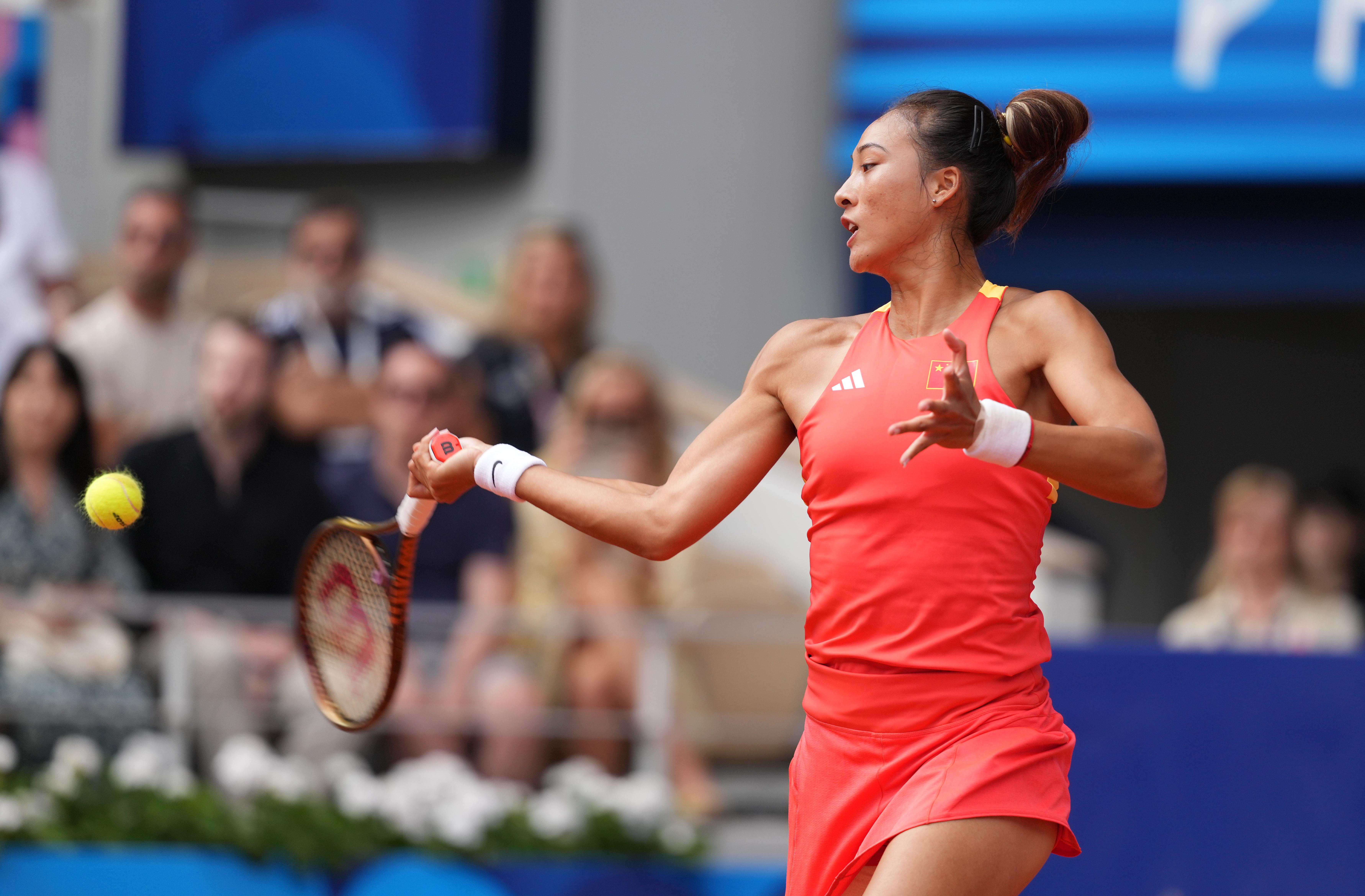 8月3日,郑钦文在比赛中回球 新华社记者 万象 摄
