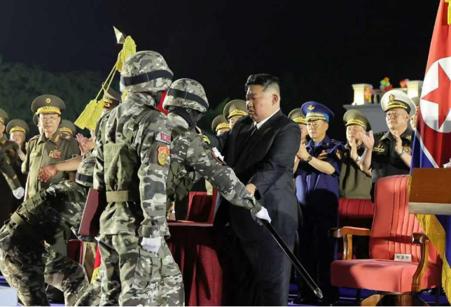 据朝中社8月5日报道,朝鲜劳动党总书记、国务委员长金正恩4日在平壤出席了新型战术弹道导弹入列仪式(上图)。
