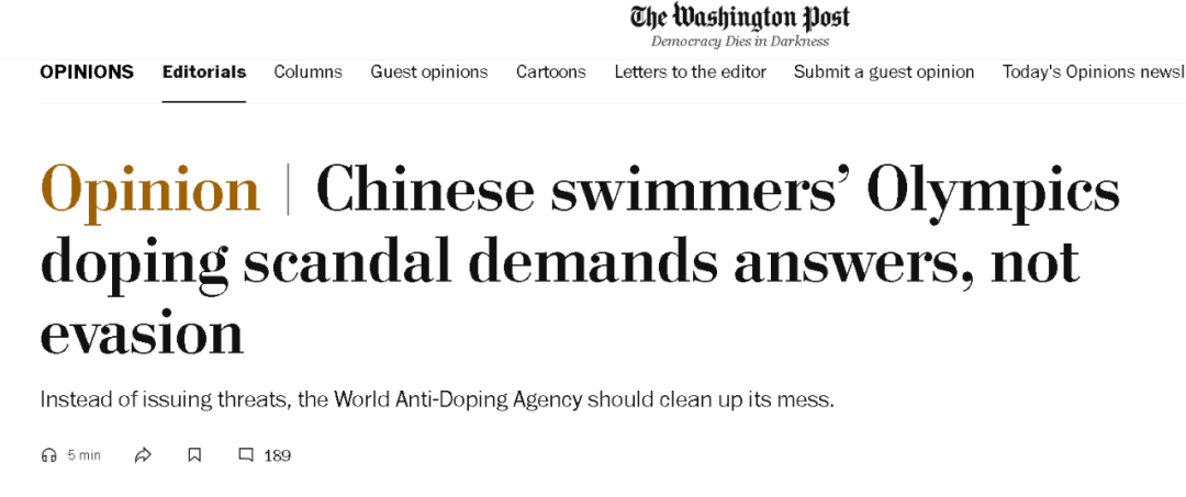 所以,面对《华盛顿邮报》在其8月4日的社评中打出“中国游泳运动员奥运会兴奋剂丑闻需要的是回应,而不是躲闪”这个大标题时,耿直哥作为一个中国媒体人,倒是想问一下《华盛顿邮报》:你们为什么在回避中国运动员接受了那么多次检测,却都没有任何问题的事实呢?
