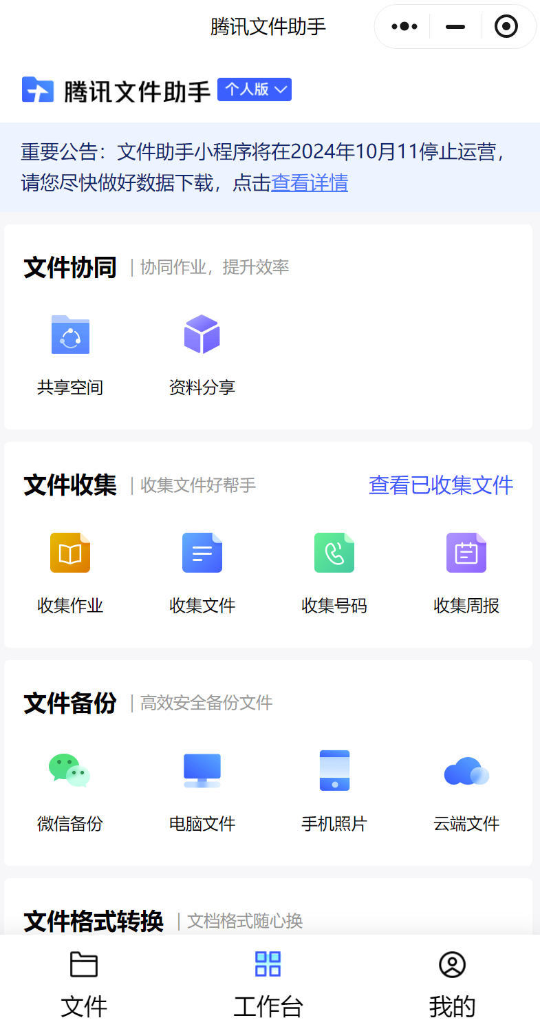 8月5日,腾讯文件助手突然发布公告,文件助手小程序及web页面将在2024年10月11日停止运营。