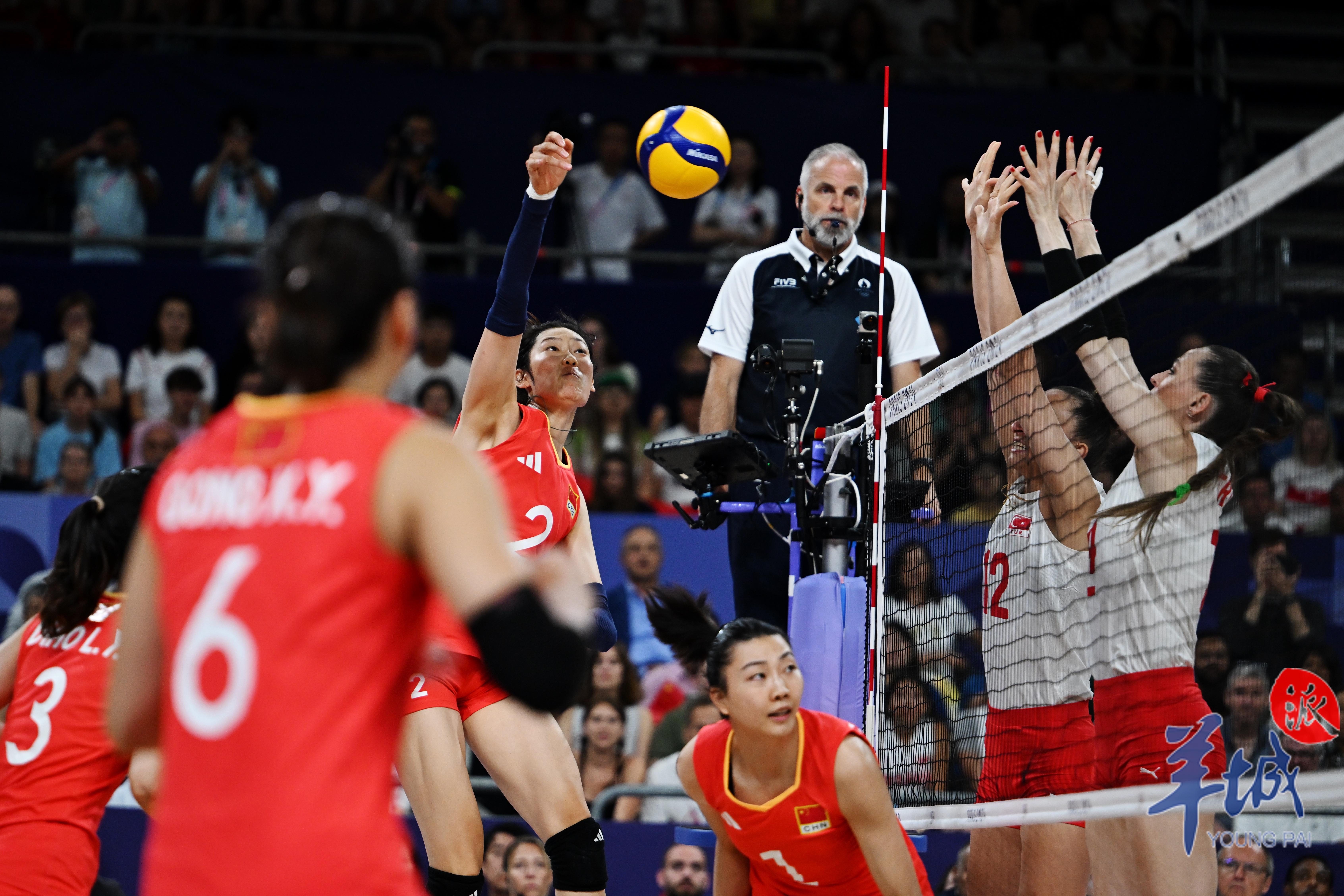 北京时间8月6日15时,巴黎奥运会排球项目女子8强赛在南巴黎竞技场一号馆内举行。中国女排2比3不敌土耳其女排。