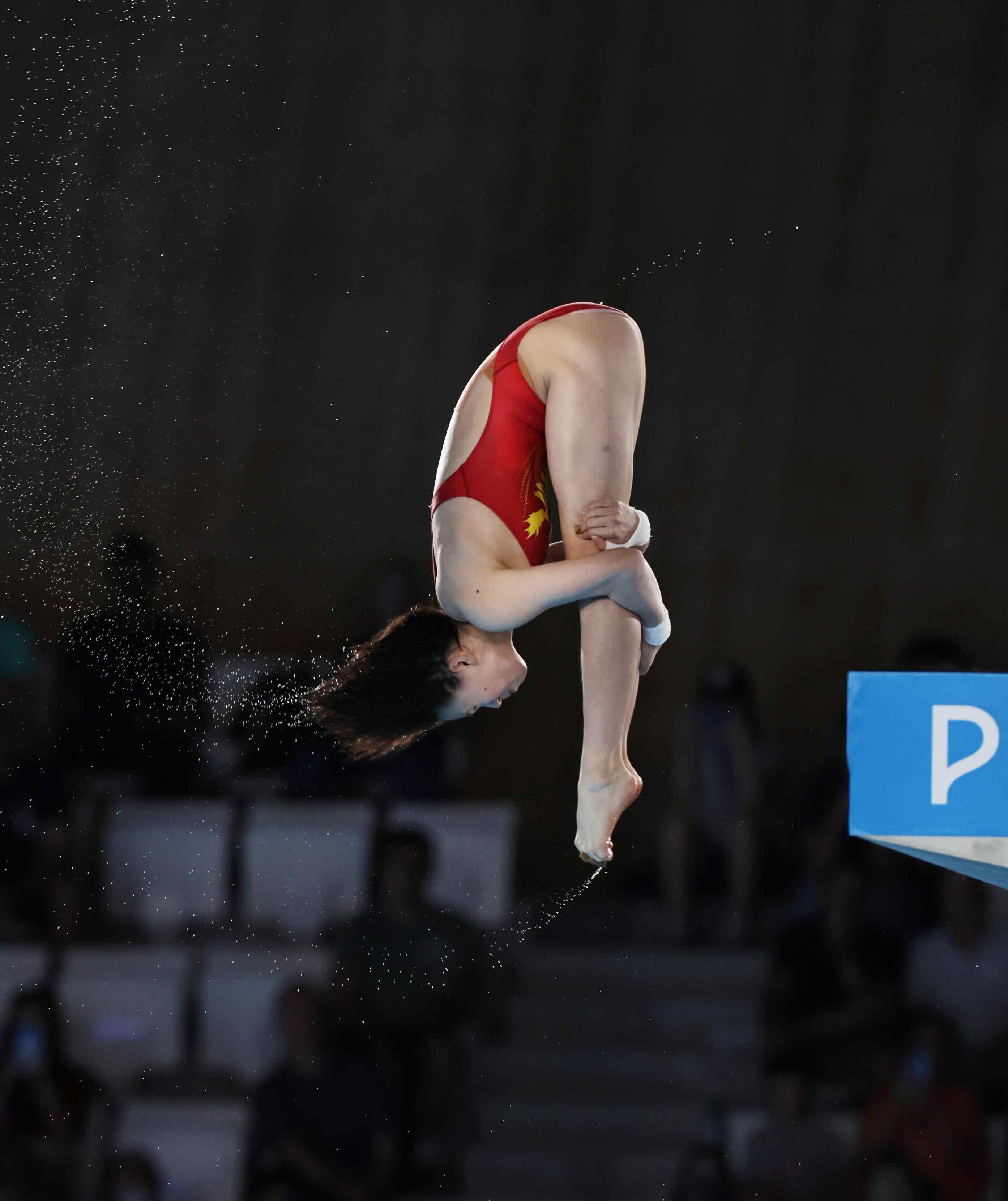 陈芋汐在第三跳拿出了质量极高的动作,拿到89.1的高分,而全红婵在本跳出现了微小失误,本跳过后全红婵仍处于首位,但领先优势仅剩下不到2分。陈芋汐在第四跳再次跳出89.1的高分,全红婵的发挥更是出色,跳出超过90的高分,在最后一跳开始前,全红婵领先陈芋汐4.9分。最后一跳,全红婵延续着稳定表现,将金牌收入囊中。