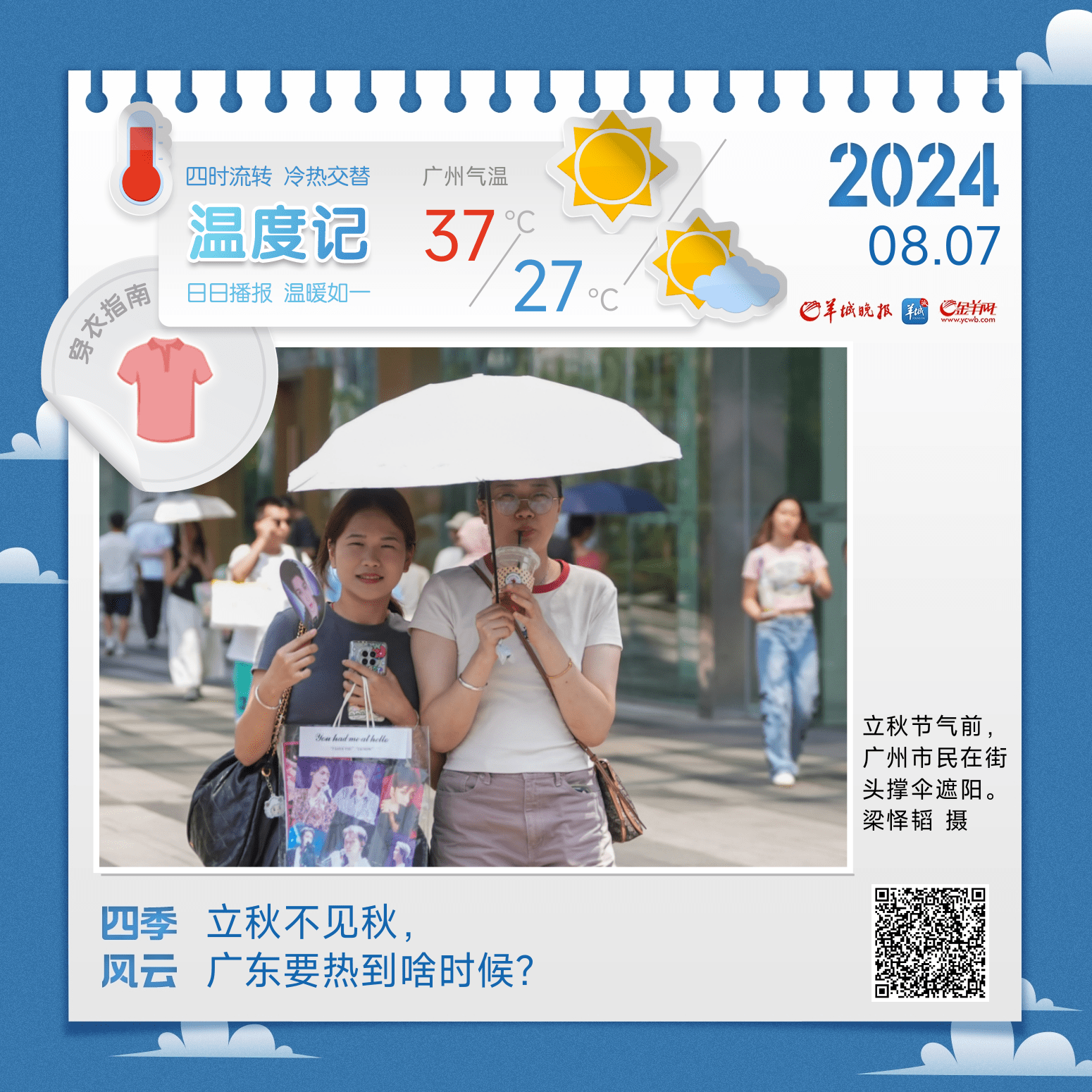从常年来看,广东的秋天要等到十月中下旬或十一月,像广州,常年入秋时间为11月9日,这意味着还得再热两三个月。