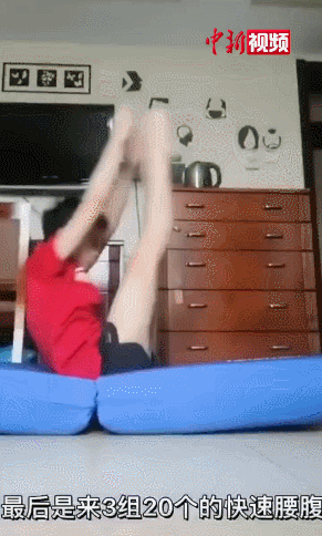 第一个动作:深蹲。一共4组,每组12次。在视频中,全红婵双手举了一桶矿泉水,然后练习深蹲动作,训练下肢力量。