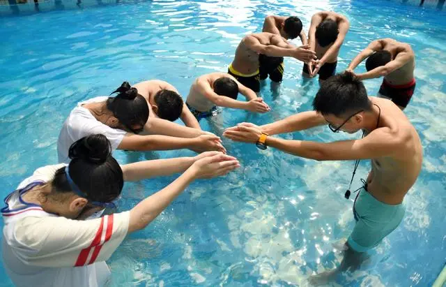 虽然游泳池通常是禁止跳水,但是总有人喜欢在泳池模仿“鱼跃”扎入水中,容易出现呛水、胸疼的情况。
