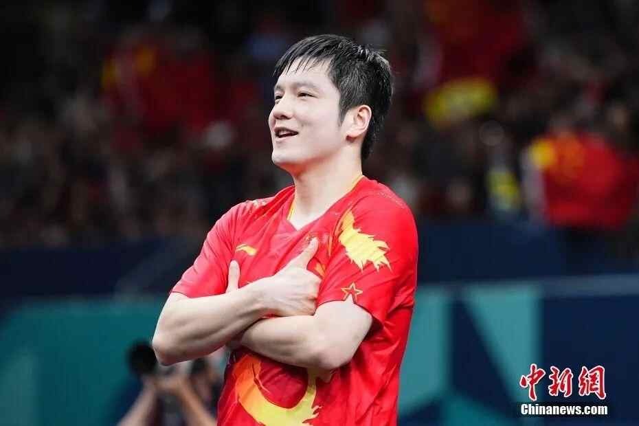 此前,巴黎奥运会乒乓球男团决赛9日在南巴黎竞技场四号馆落下战幕。面对奥运会男单亚军莫雷高德领衔的欧洲劲旅瑞典队,由樊振东、马龙、王楚钦组成的中国队以三场都是3:2的激烈角逐胜出,总比分3:0赢得胜利,实现奥运男团五连冠。