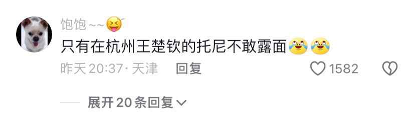 在tony老师接受采访的视频下,有网友评论:“只有在杭州王楚钦的托尼不敢露面”。