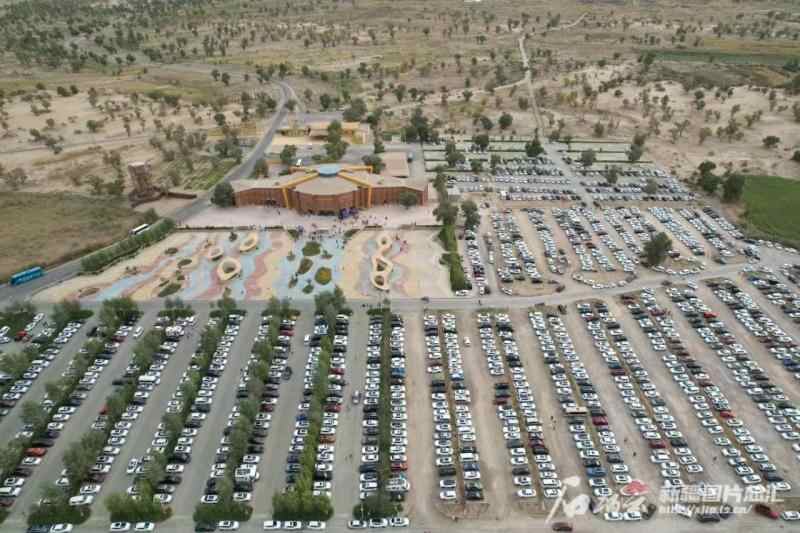 进入暑期罗布人村寨景区迎来众多游客,图为景区停车场停满车辆。图片由罗布人村寨景区提供