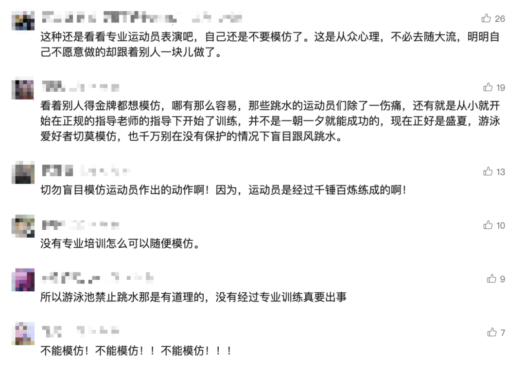 对此,不少网友认为:“还是看看专业运动员表演吧,自己还是不要模仿了。”
