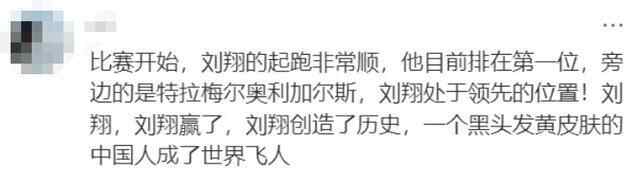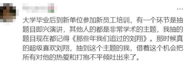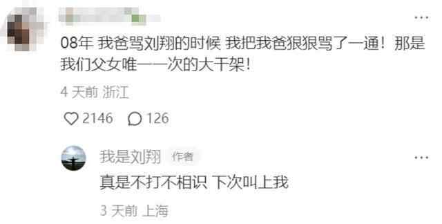 除此之外,还有不少网友提及关于刘翔的回忆。当年比赛的体育解说词,很多人倒背如流。评论区瞬间变得自带声音。有网友说,曾为了刘翔和爸爸吵架。刘翔本人回复:“下次叫上我。”有人表示,会把刘翔的海报贴在墙上激励自己。还有人说,曾把刘翔写进作文和演讲里。