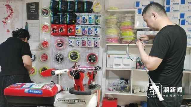 9日下午,该店的常客陈女士带来一副断线的羽毛球拍,她说每周末坚持打4小时羽毛球,因此球拍线损耗大,一般每个月都得送拍子来换线。陈女士放下球拍问,“明天是周末,能否插队早点换掉?”张少慧听到急用,只能说“今晚再晚也保证搞定”。