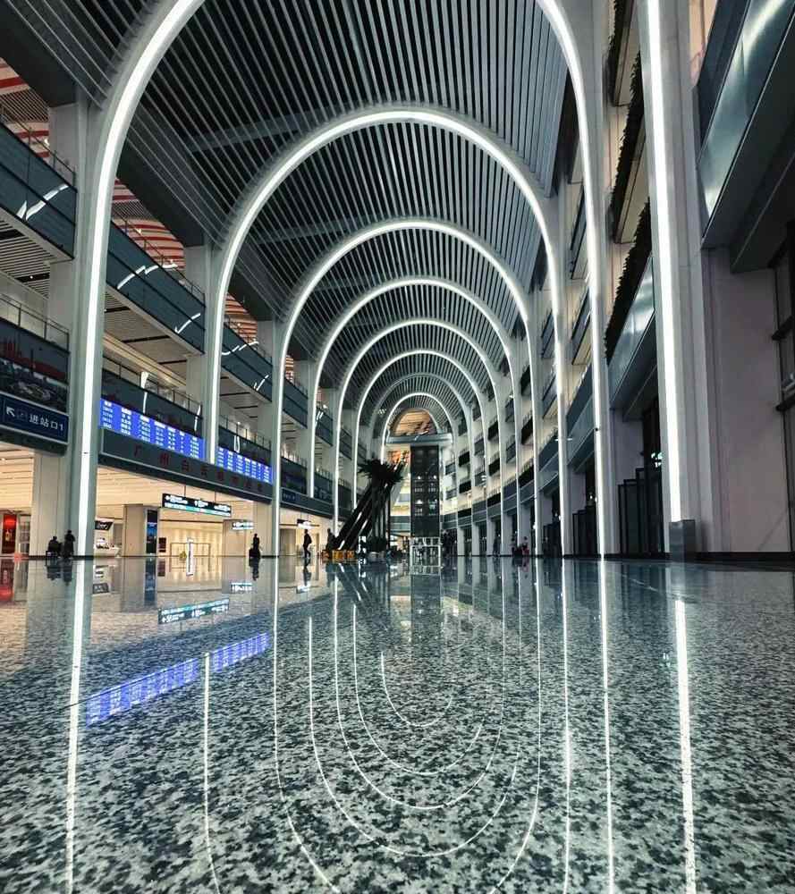 四角进站,八方迎客。站场规模11台24线,地上3层,地下4层,可满足1万多人同时候车,这就是亚洲特大型综合交通枢纽——广州白云站。