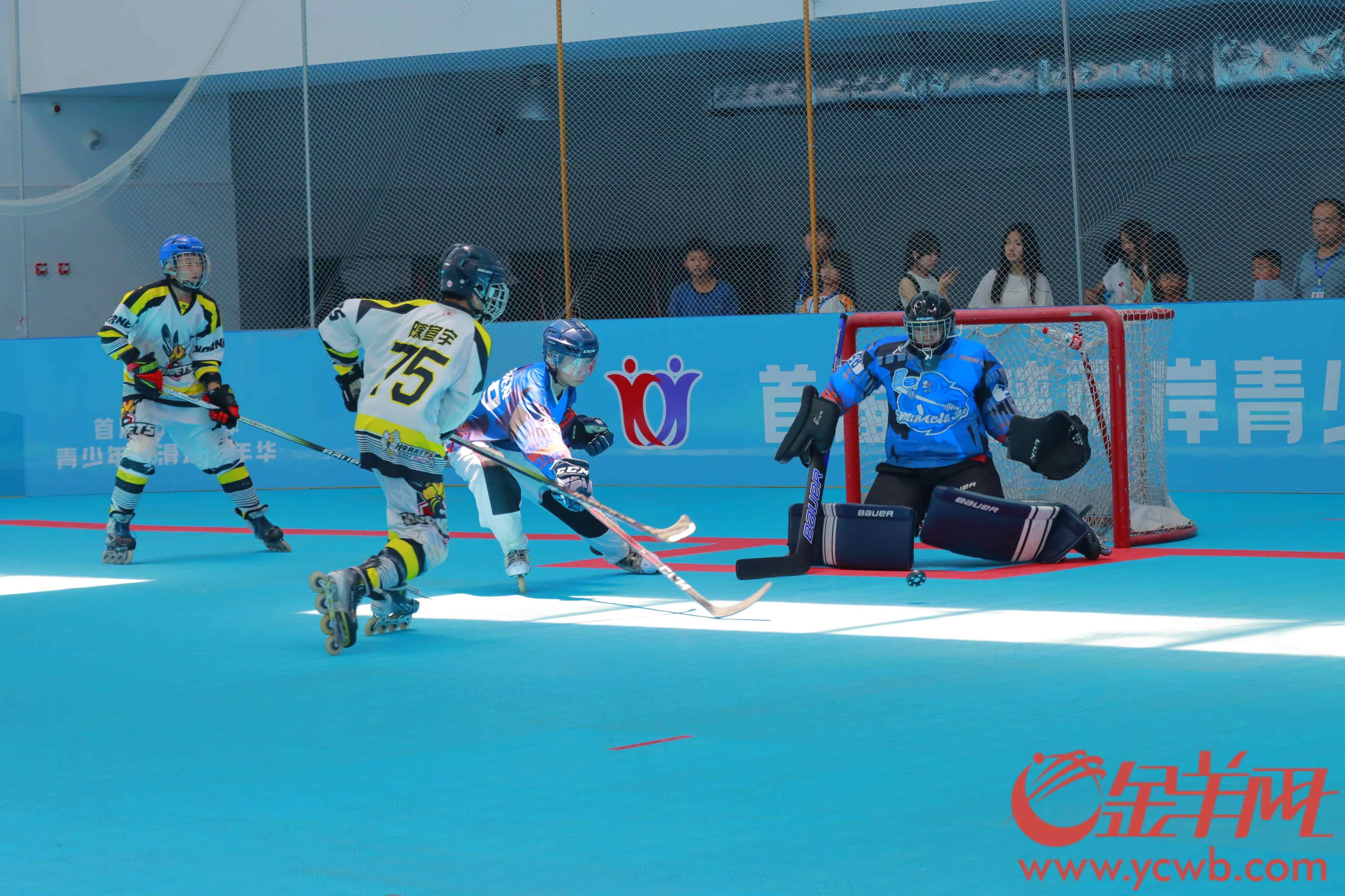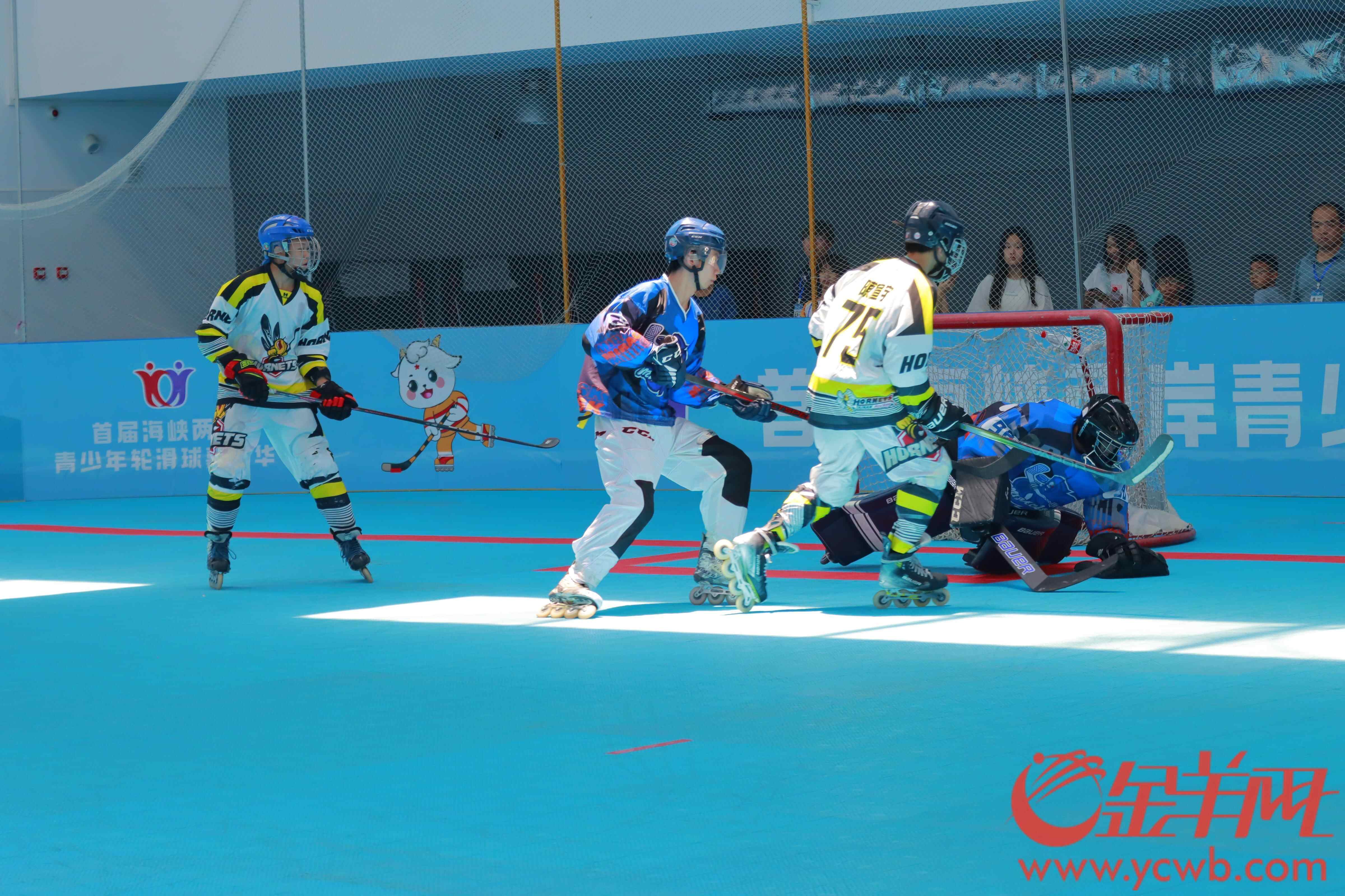 “防守防守!”“回传给我!”8月12日,伴随着响亮的哨声、清脆的击球声,一场激烈的轮滑球比赛在广州外国语学校举行,“首届海峡两岸青少年轮滑球嘉年华”活动由此拉开帷幕。
