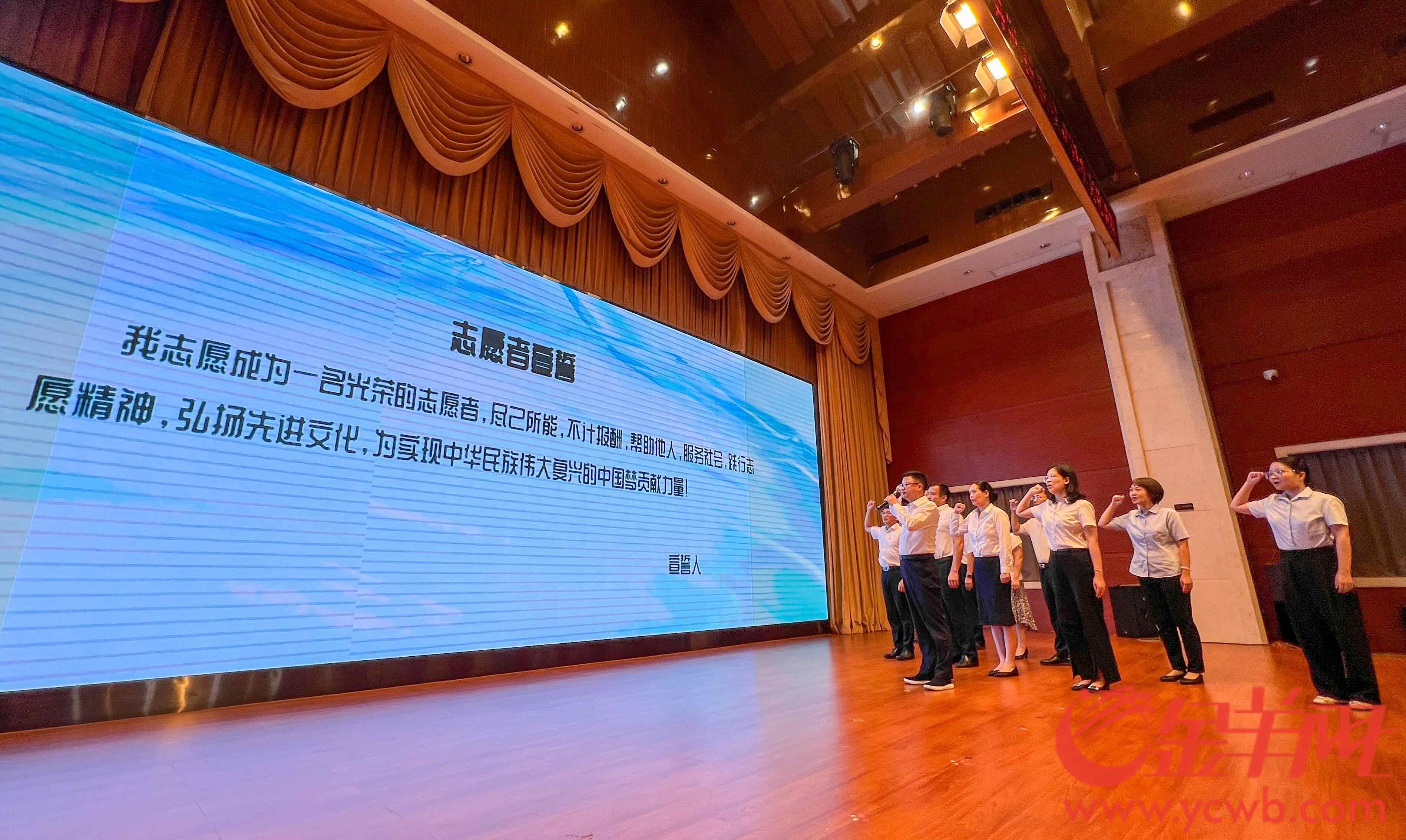 通过8月13日的仪式,广东省志愿者联合会会长顾作义向广州水投集团“水融融”职工志愿服务队授旗,广州水投集团多个成员单位获授“水融融”职工志愿服务队旗帜,职工代表现场宣誓愿意为多项水务工作提供志愿服务。举办仪式的广州水博苑,获广东省心理健康协会授予“广东省青少年心理志愿服务总队志愿服务基地”牌匾。